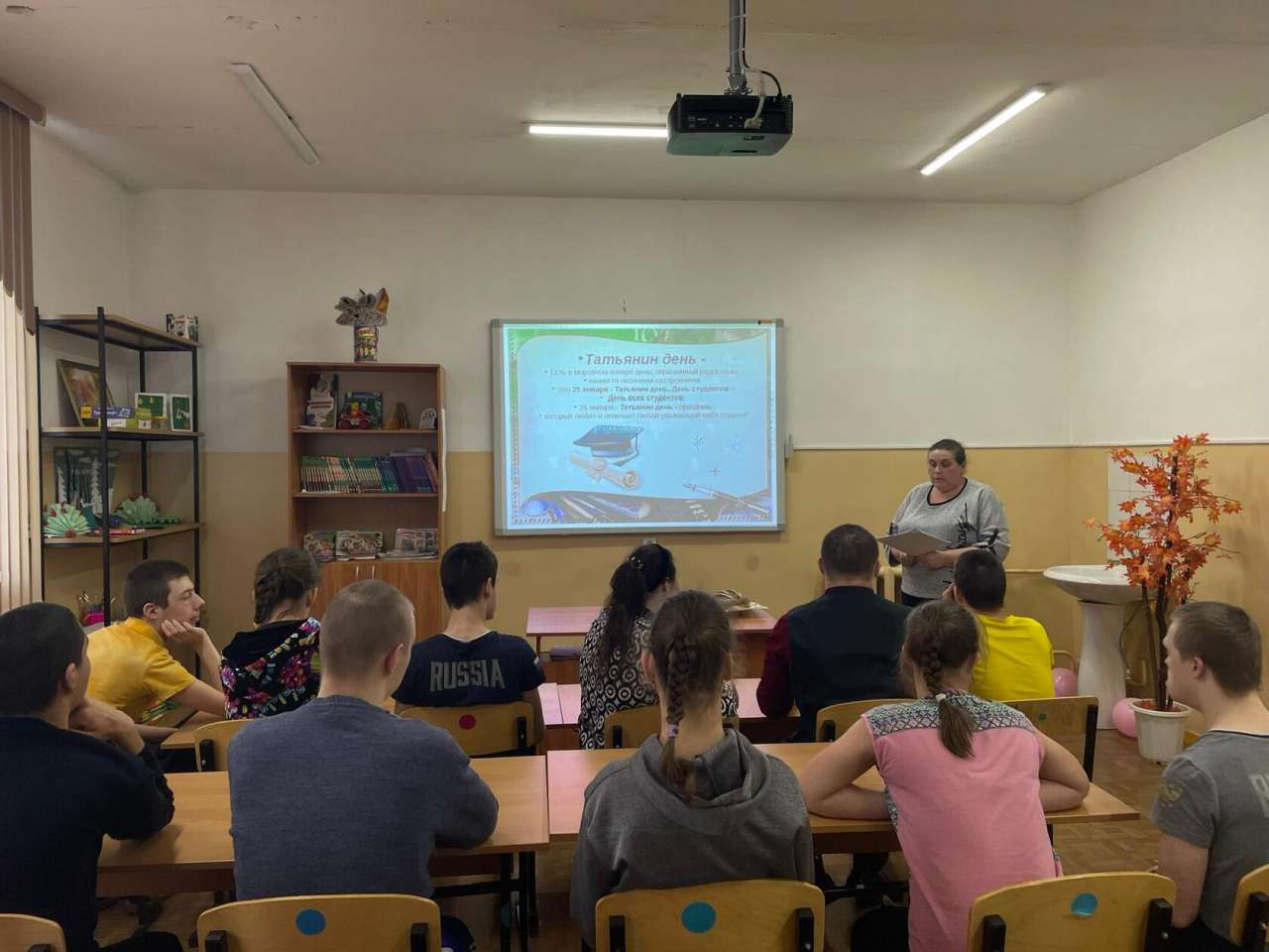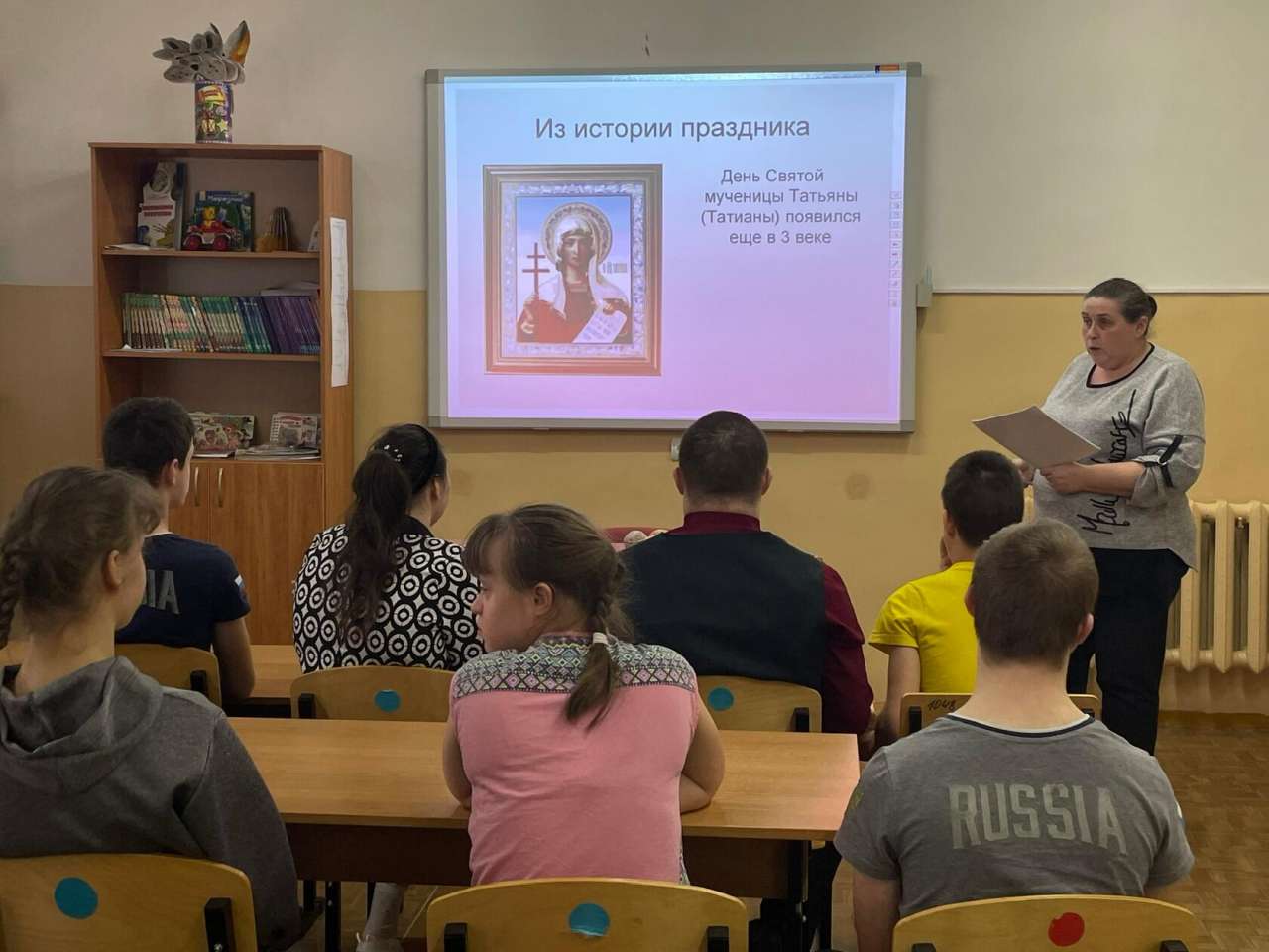 Сегодня в нашем Центре прошло творческо - познавательное мероприятие «Имя славное твоё – Татьяна». Педагог - психолог Бондарева Т.Н. познакомила ребят с историей возникновения праздника, его традициями и обычаями.
