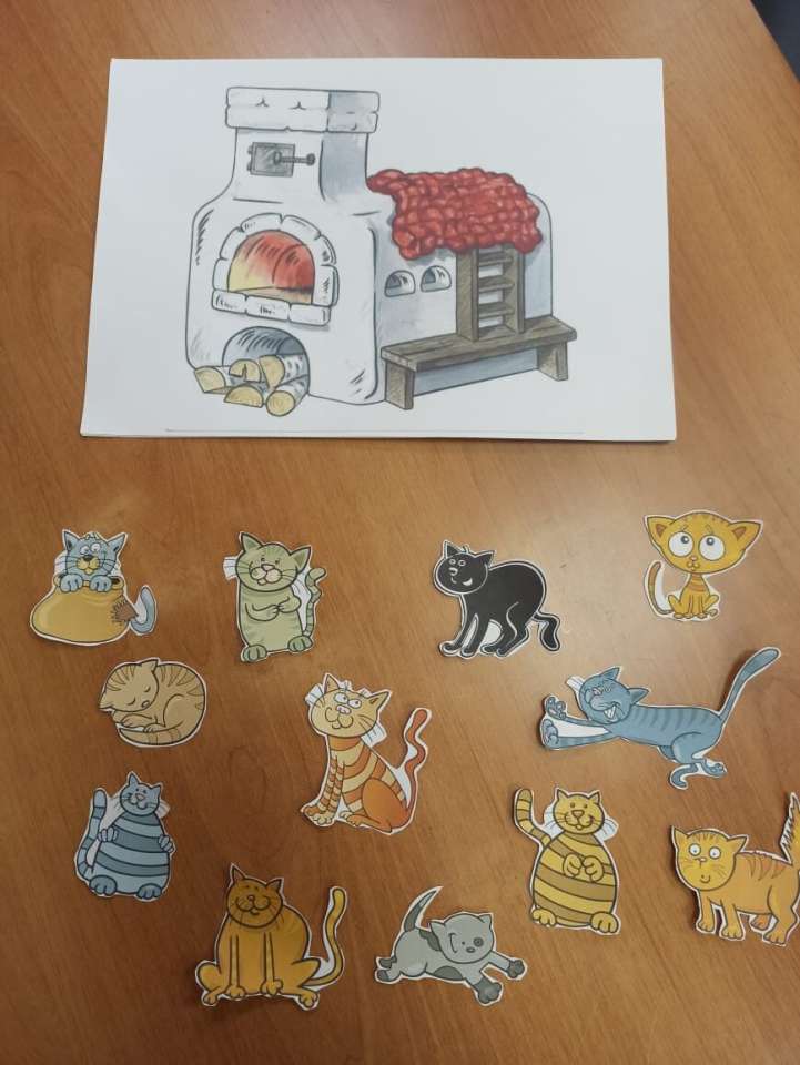 Вместе вспомнили потешку: Как у нашего кота шубка очень хороша, как у котика усы удивительной красоты, глазки смелые, зубки белые.