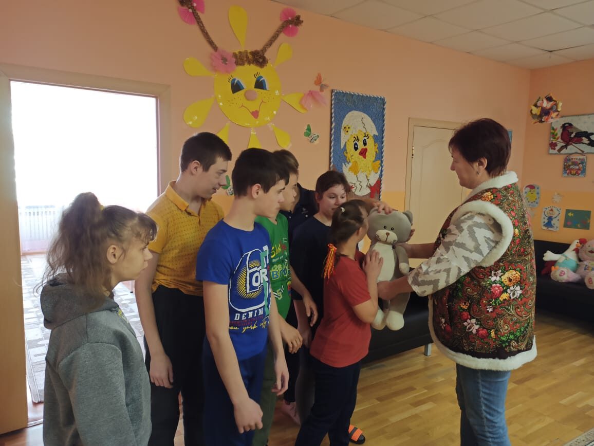 Вот и мы сегодня в отделении психолого-педагогической реабилитации, вместе с котом Кузей, поиграли в игру "Волшебный клубочек". У кого в руках клубок, тот мяукает как кот.