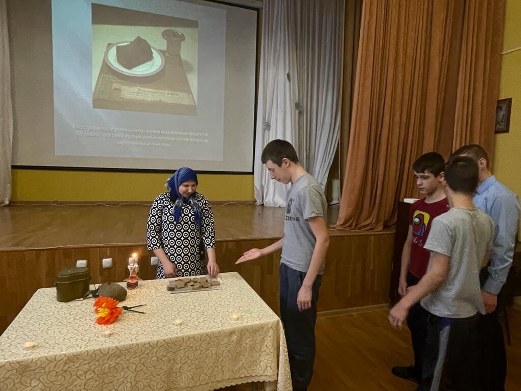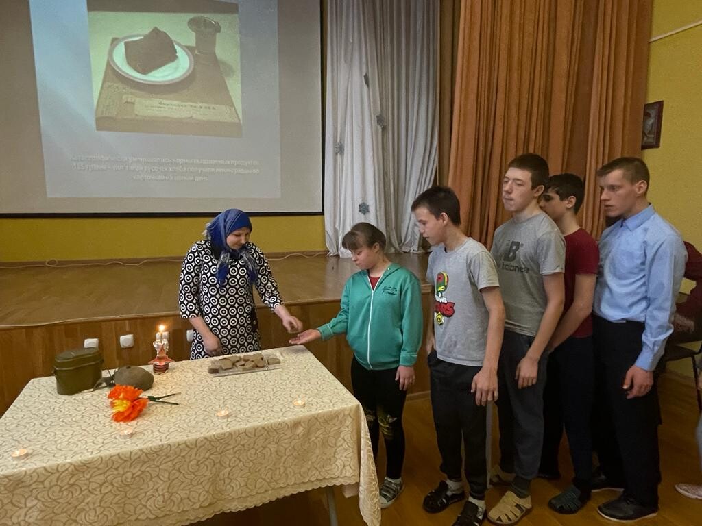 Блокада-далеко как это слово. От наших с Вами мирных дней, Произношу его и вижу снова, Голодных, умирающий детей. Я вижу опустевшие кварталы, И как трамваи вмерзли на пути, И матерей, которые не в силах, Своих детей на кладбище нести. В блокадных днях мы так и не узнали: Меж юностью и детством, Где черта? Нам в сорок третьем, Выдали медали и только в сорок пятом-Паспорта... В нашем центре воспитатели Шатура Е.В., Свекольникова Н.Н., Бутова А.А., Дацковская и педагог дополнительного образования Аулова И.В. провели тематическую беседу "Расскажем детям о войне", направленная на просвещение воспитанников. Цель: Рассмотреть представление детей о героическом подвиге жителей блокадного Ленинграда. Познакомить детей с жизнью людей в это время. Блокада Ленинграда. Почти 82 года назад на нашу страну напал враг, фашисты. Было это 22 июня 1941 года. Был летний день, воскресенье. Люди отдыхали. Вся страна узнала, что началась война. Враг наступал со всех сторон к нашему городу, и вскоре Ленинград оказался в блокадном кольце. Девятьсот дней Ленинград находился во вражеской блокаде. А это значит, что он со всех сторон по суше был окружён врагами... Воспитанники совместно с воспитателями, педагогами поучаствовали в Всероссийской акции "Блокадный хлеб", реализуемой в рамках федерального проекта "Патриотическое воспитание граждан РФ " национального проекта "Образование" просмотрели документальный фильм: "Блокада-дети".