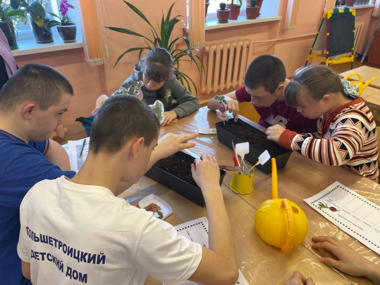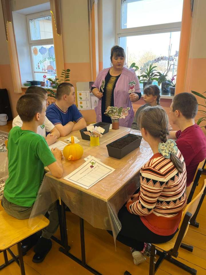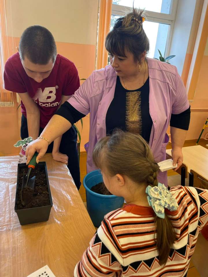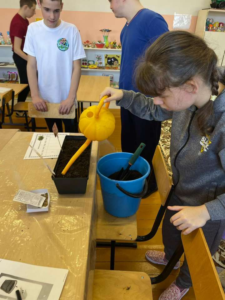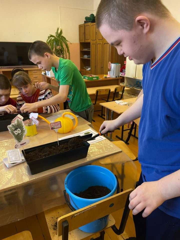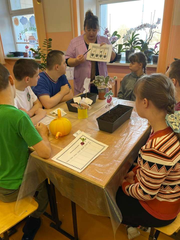 Ребята кружка "Юный растениевод" с педагогом дополнительного образования Андроник Е.В. учились сажать семена овощей. Воспитанники с удовольствием выполняли все этапы посадки, появился интерес вести наблюдения и делать выводы при уходе за растениями.