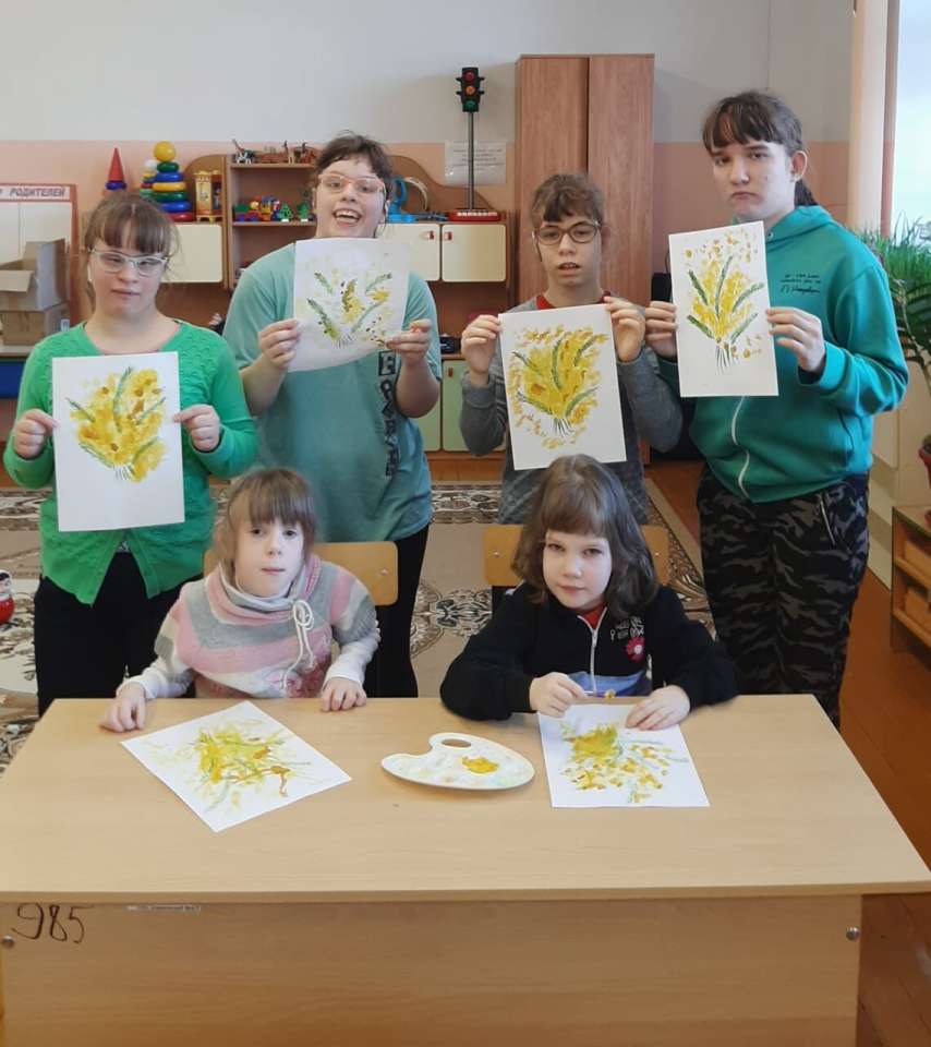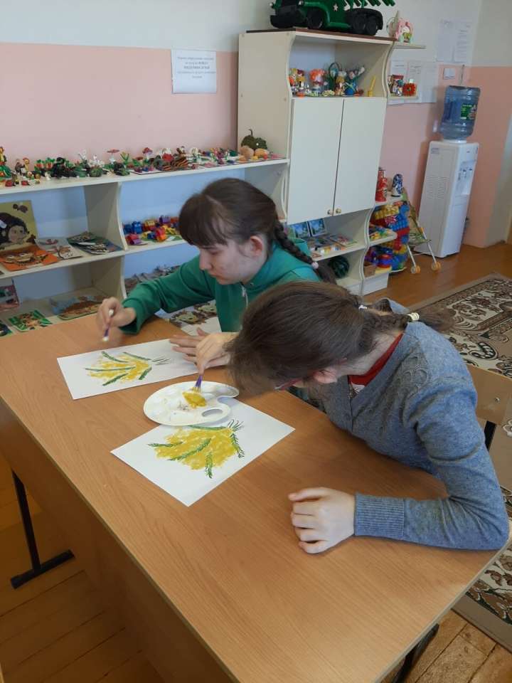 Скоро женский праздник, а значит подарки, цветы. Девочки решили нарисовать Мимозы-самые первые мартовские цветы. Под руководством педагога дополнительного образования Андроник Е.В. они старательно и аккуратно наносили краску, добивались, чтобы цветы были похожи на настоящие. И, по-моему , их старания оправдались!