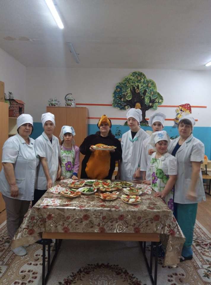 Сегодня в отделении психолого- педагогической реабилитации необычное занятие, яркое, вкусное, гостеприимное. Воспитатели: Свекольникова Н. Н., Дрокина Г. Л., Салбанова З. С., Морозова Е. Н. провели мастер-класс "Я знаю! Я умею! Я могу!".