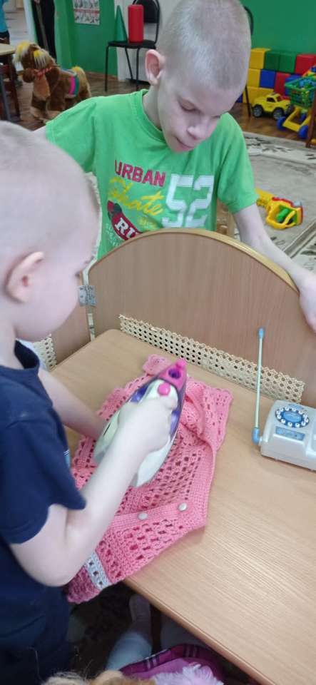 Выходной субботний день в отделении Милосердия, группа манеж проходит весело и познавательно. Дети выбирают для себя игры по своему интересу. В игре мы закрепляем способы взаимодействия с различными игрушками и материалами. Воспитатель Наумова С. В.