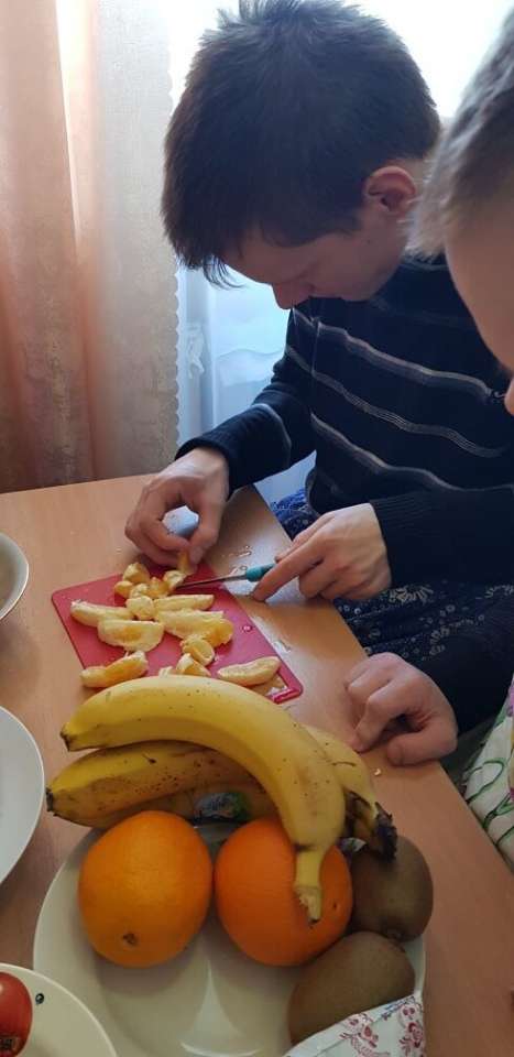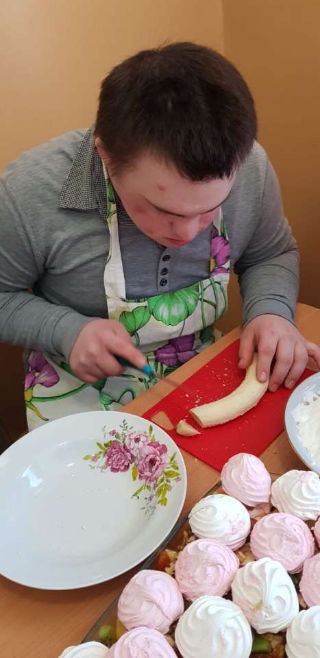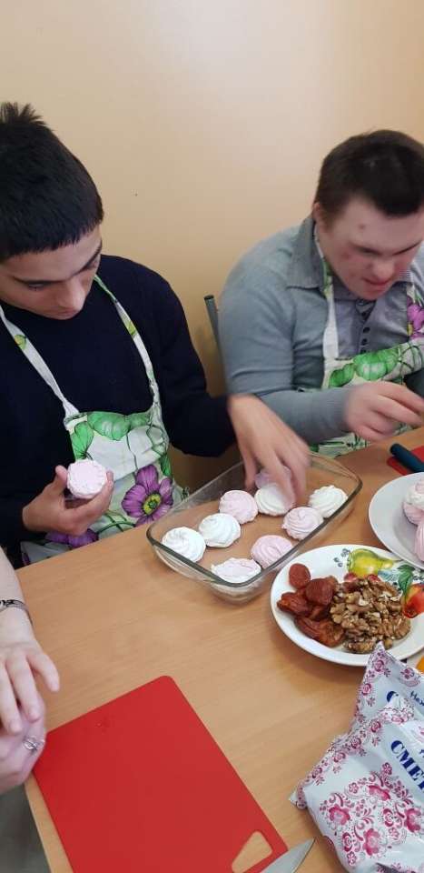 Сегодня ребята из отделения Молодой инвалид готовили нежное и ароматное лакомство - зефирный торт. В процессе вспомнили названия экзотических фруктов: банан, киви, апельсин. Познакомились с новыми продуктами - грецкий орех, курага. Процесс приготовления увлекает детей. Это помогает им развиваться и приобретать новые навыки. С каждым разом мы осваиваем новые рецепты, развиваем фантазию и творчество! Ведь приготовленное блюдо - это произведение искусства!