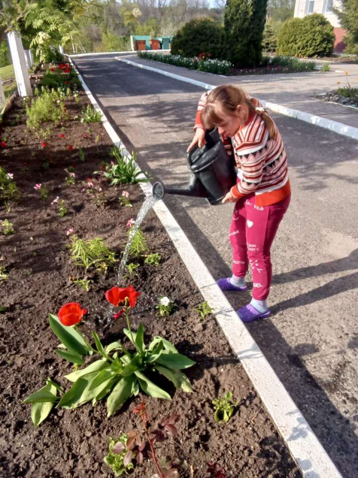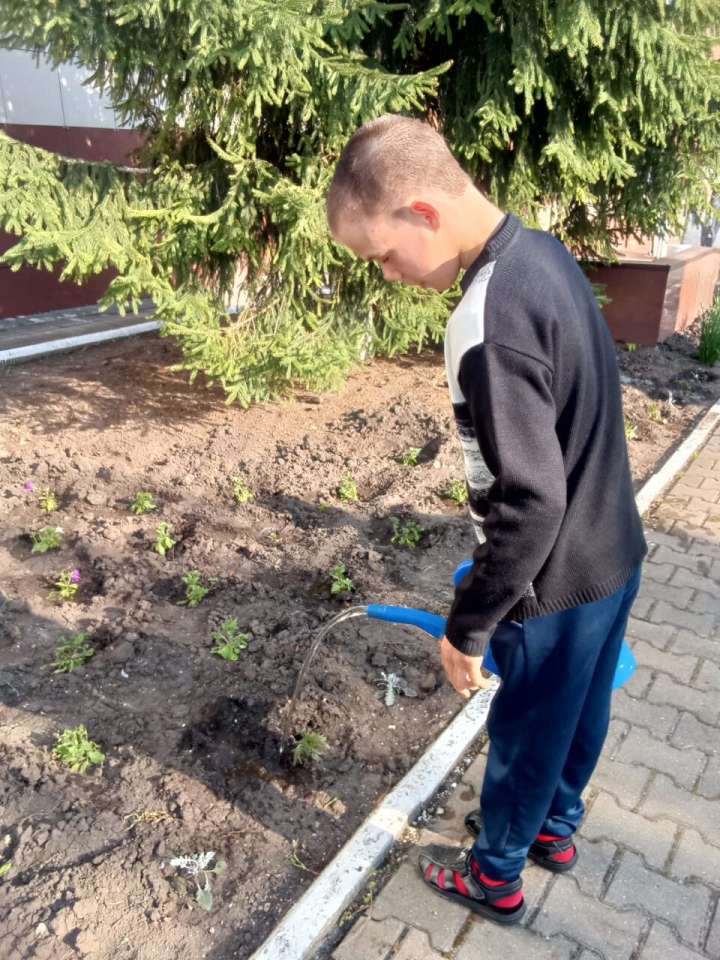 Наши ребята не только очень любят с восхищением любоваться красотой цветов, вдыхать их приятный аромат, но и с большим желанием принимают участие в посадке цветов, прополке цветника, особенно любят поливать цветы.