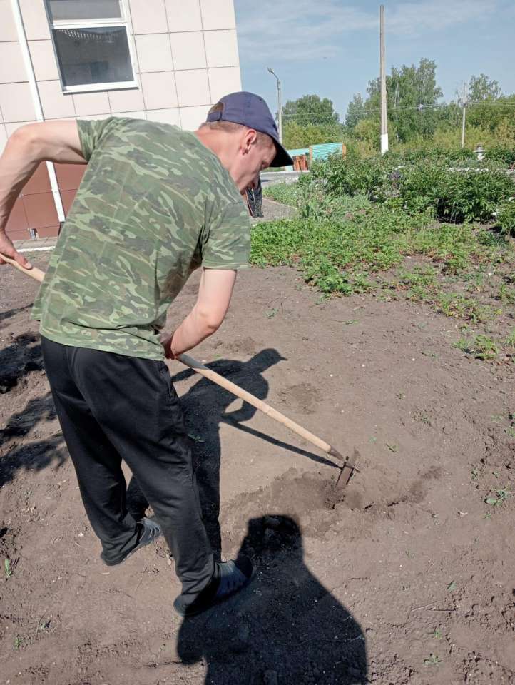 Получатели социальных услуг, отделения Молодой инвалид, под руководством инструктора по труду Арзумановой Г.И. на своём участке высадили рассаду помидор и семена огурцов.