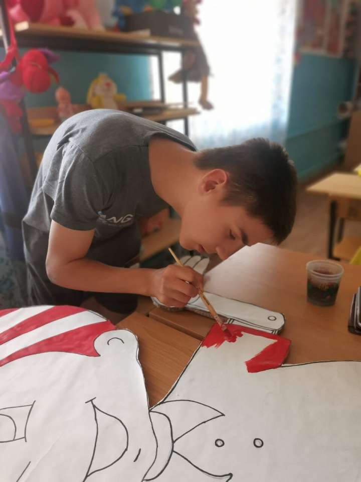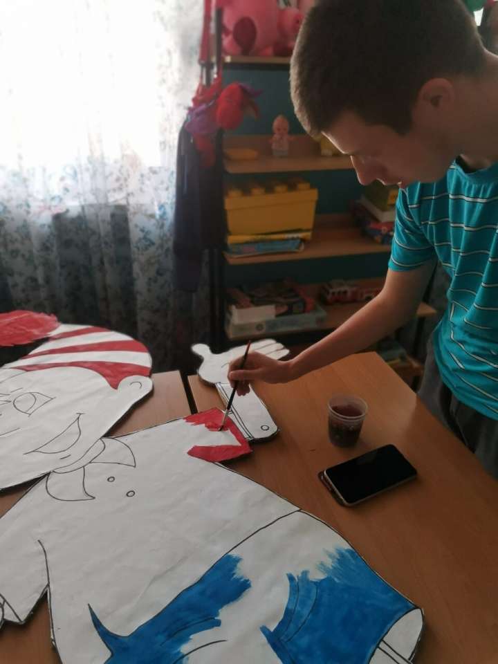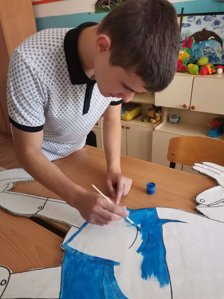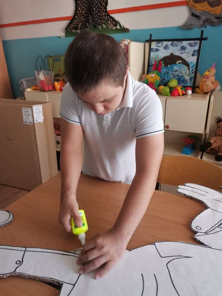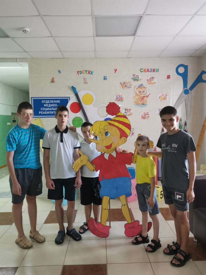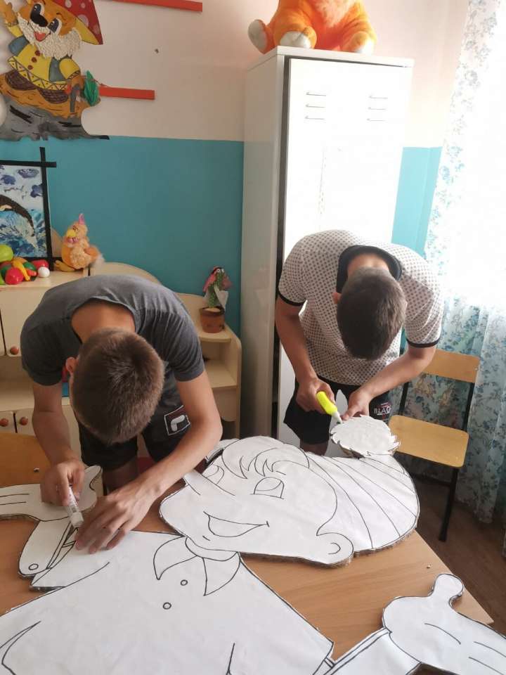 Мальчики из отделения социальной реабилитации принимали активное участие в завершении оформления фотозоны.🥳 Ребята с интересом склеивали фигуру известного мульти героя - Буратино, активно помогали раскрашивать.