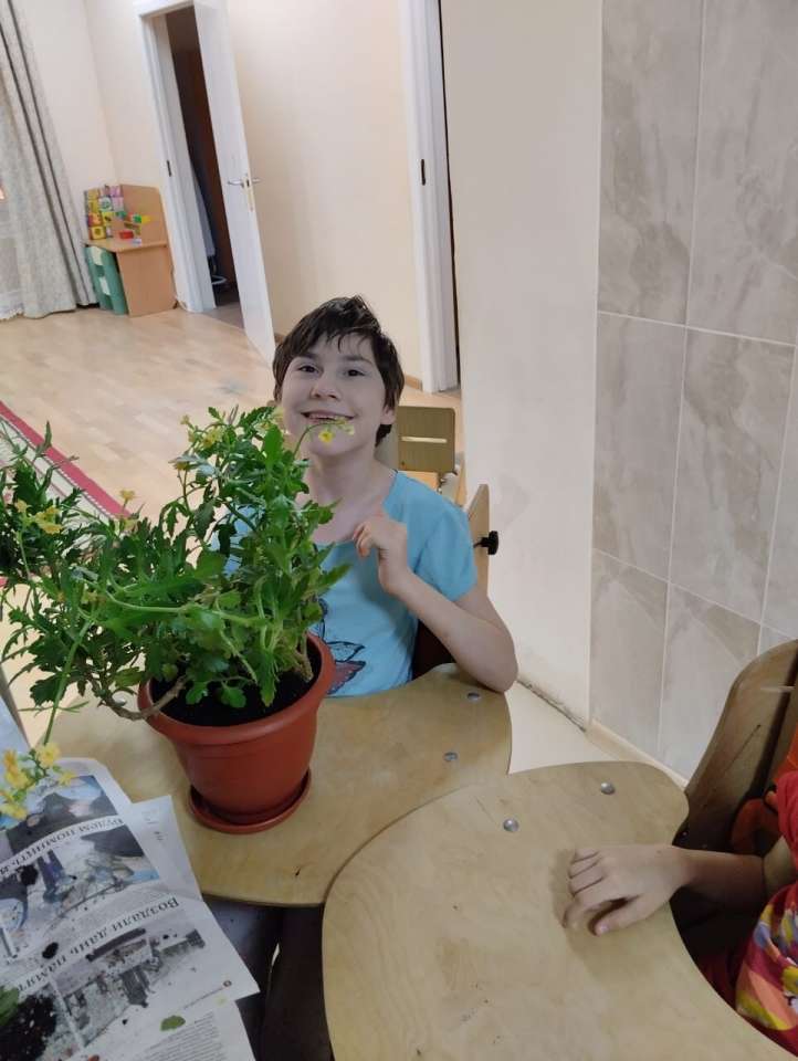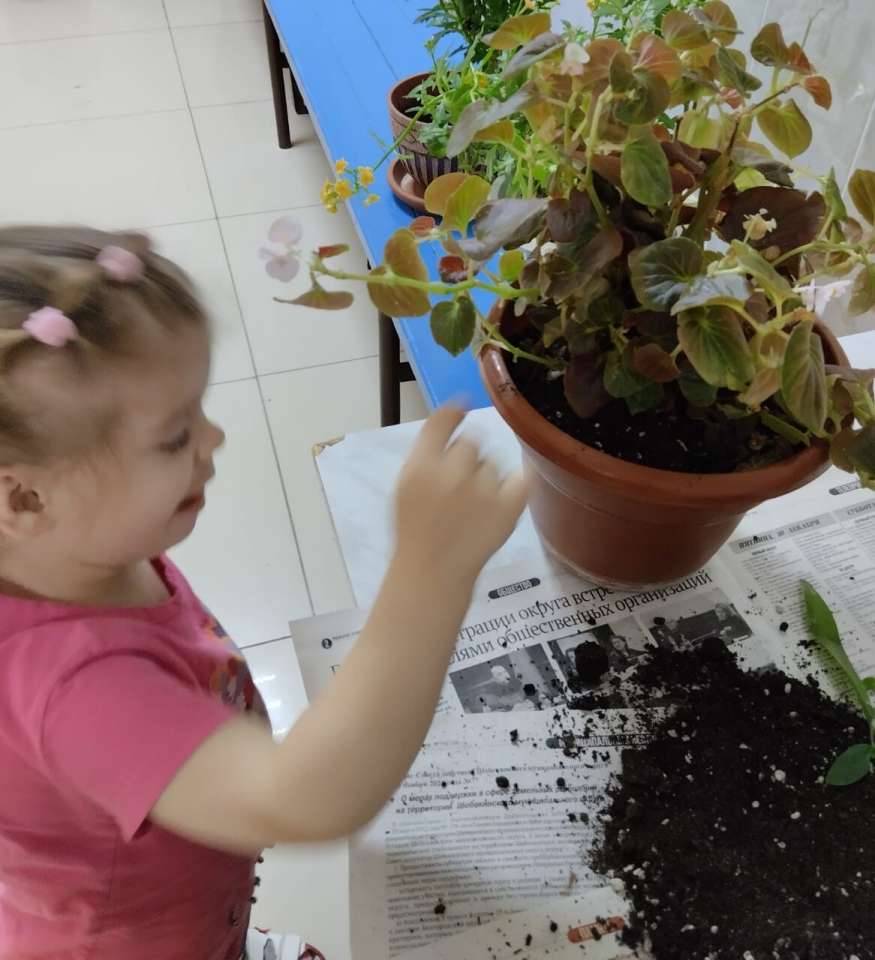 В группе Манеж ребята пересаживали растения с помощью воспитателя.