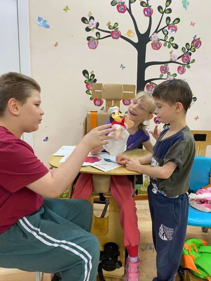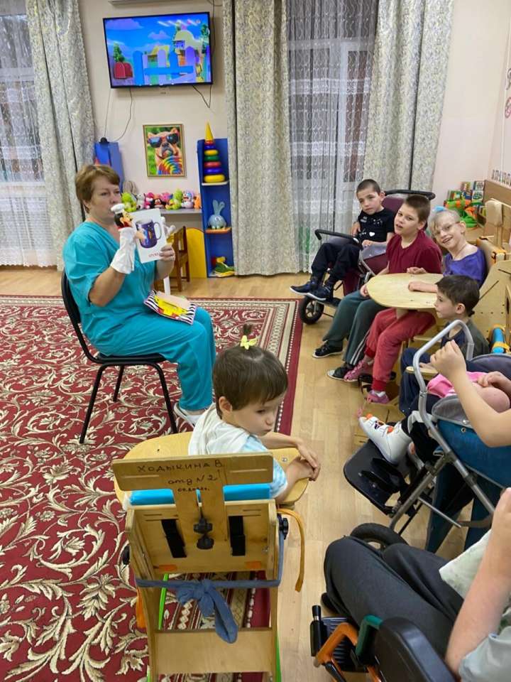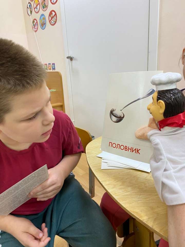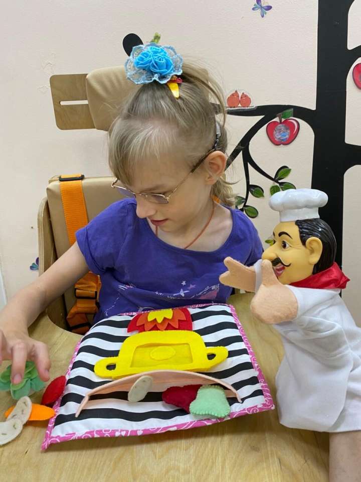 В отделении Милосердия, группе манеж воспитатель Наумова С.В. провела занятие «День поваренка». К детям пришел игровой персонаж Повар, он принес с собой картинки с изображением посуды и столовых приборов и игру «Сварим борщ».