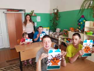 Ребята из отделения психолого-педагогической реабилитации совместно с социальным педагогом Сиденко О.С. делали аппликацию "Ежик".