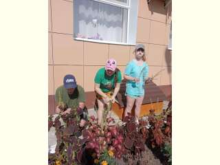 Получатели социальных услуг с отделения Молодой инвалид на занятие по трудотерапии под руководством инструктора по труду Арзумановой Г.И. убирали урожай лука и кабачков, а так же ухаживали за цветочками на клумбе.