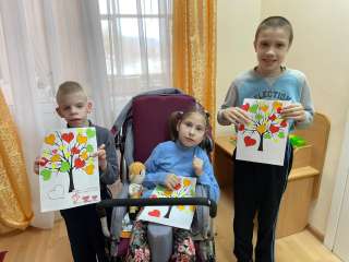 Вместе веселее и легче, коллективное изготовление открытки – Валентинки в отделении Милосердия.