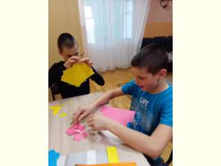 Сегодня опять праздник! И он как нельзя, кстати, в такой день. В отделении Молодого инвалида под руководством инструктора по труду Арзумановой Г. дети смастерили поделки и оформили группу.