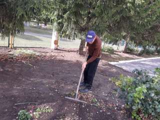 Сегодня группа молодой инвалид на занятие по трудотерапии помогали убирать на территории двора.