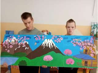 Мальчики из группы молодой инвалид под руководством инструктора по труду Арзумановой Г. И. уже одну картину для конкурса закончили .