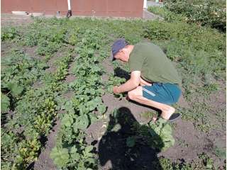 Сегодня группа молодой инвалид на занятие по трудотерапии проводили прополку и прорывали бурьян на своем огородике под руководством инструктора по труду Арзумановой Г.И.