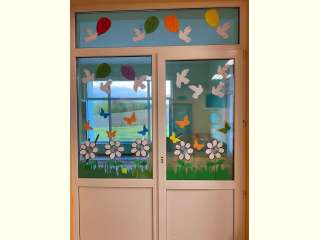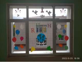 В преддверии "Дня защиты детей" группа девочек совместно с воспитателем Загорцевой Т. решили создать более праздничное настроение с помощью тематического украшения окна.